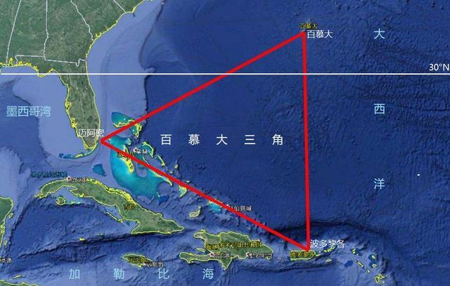 其次,北纬30°纬线附近也是飞机和轮船失事的高发区,其中最为著名的就是“百慕大三角”区域,位于北美佛罗里达半岛东南部,由美国迈阿密、百慕大群岛和波多黎各的圣胡安共同组成的巨大三角区域,除此之外日本本州岛西侧、阿富汗、地中海、伊比利亚半岛西侧海域和夏威夷群岛以东海域也被认为是异常区域。