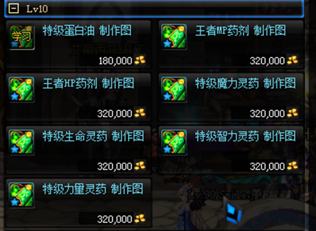 五级的时候可以学习6级的上级蛋白油,这个东西非常多人要买,用来做人偶的必备材料!而且这个东西,个人推荐一直做,把等级堆到8级。