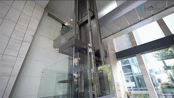专业服务豪宅的eHome在这方面处理得相当到位,静音风扇的设计让轿厢内噪音更小,电梯部件运行噪音控制在55dB以下,相当于台式电脑主机运行的声音。